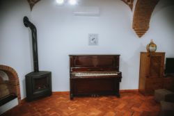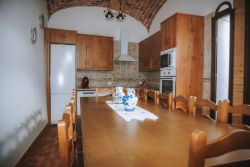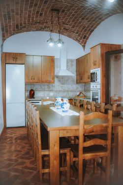 La casa rural consta de un extenso salón comedor, una amplia y funcional cocina con salida directa al patio con todo tipo de electrodomésticos, 7 dormitorios dobles con sus respectivas TV y 7 cuartos de baño completos.